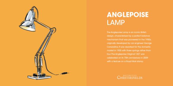 The Anglepoise Lamp is an iconic British design, characterised by a perfect balance mechanism that was pioneered in the 1930s, originally developed by car engineer George Carwadine. It was reworked for the domestic market in 1935 with three springs rather than four. The Anglepoise Original 1227 was celebrated on its 75th anniversary in 2009 with a feature on a Royal Mail stamp.