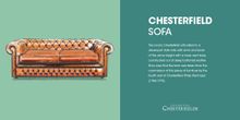 The iconic Chesterfield sofa refers to a davenport style sofa with arms and back of the same height with a lower seat base constructed out of deep buttoned leather. Story says that the term was taken from the commission of this piece of furniture by the fourth earl of Chesterfield, Philip Stanhope (1764-1773).