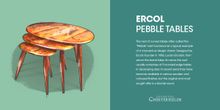 The nest of curved tables often called the “Pebble” nest has become a typical example of a mid-century design classic. Designed by Ercol's founder in 1956, Lucian Ercolani, from whom the brand takes its name, the nest usually comprises of 3 rounded edge tables in decreasing sizes. In recent years they have become available in various wooden and coloured finishes, but the original and most sought after is a blonde wood.