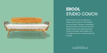 The Ercol Studio Couch, also known as a Daybed, was introduced in 1956. Designed by Lucian Ercolani, it features a characteristic steam bent frame and arched arm rests with tapered spindles. It was devised to be both functional and stylish, with the ability to act as a large sofa and an occasional single bed for guests.