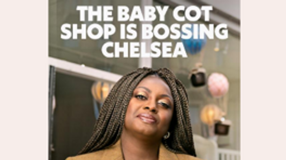 The Baby Cot Shop's founder, Toks Aruoture, can be spotted on billboards across the capital. The Director of Chelsea's most premium nursery shopping destination is the new face of accounting company Sage's latest campaign, demonstrating that small businesses can thrive in the post-pandemic climate.