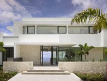 IQ Glass International provided the glazing package for the villa, including the glass entrance design that is complete with floor to ceiling glass walls either side of the porcelain finished, pivoting front door. The white colour palette extends to the roof, where a roof overhang has been designed to offer built in solar shading.