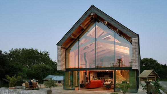 Hayle House incorporates striking architectural glazing solutions, transforming the property into a light-filled, contemporary home while respecting its natural surroundings. A key feature of the design is the extensive use of frameless glass panels that create uninterrupted views of the countryside, blurring the lines between the home's interior and the panoramic landscape.