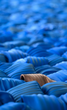 Visitors engaged with the flowing, field-like plateau of tiles, pausing to sit, reflect, and interact with its unique textures and central fountain water feature. 'The Ripple Effect' reflects on how every act of natural resource extraction carries environmental and social consequences. The copper mining yield of just 0.4% is symbolised by eight copper-coloured tiles scattered among 2,000 blue ones. The striking palette, achieved by incorporating industrial waste into the clay, has sparked conversations about resource extraction, recycling, and our collective responsibility as consumers.