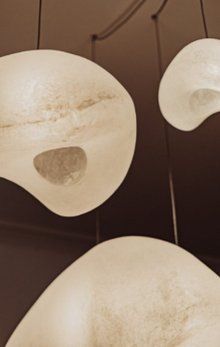 Designer, artist and sculptor Mark Bimer explores the duality between minimalism and freedom of form through his deep interest with natural synthesis and its impact on materials. Bimer investigates how natural elements including rain, light and wind shape their form and presence. Through blending aesthetics and testing, Bimer reveals unexpected and innovative forms. At Mint, Bimer presented 'CLOUD LAMP' and 'CLOUD PENDANT' organic works that evoke an ethereal atmosphere and transform spatial perception.