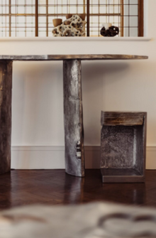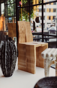 A self-taught furniture designer and maker for functional art pieces, Aleksander Oniszh is well regarded for his intuitive approach to form and unusual use of tools. His work is guided by intuition and a deep understanding of wood's natural behaviour and structure. Having founded his studio in 2013, Oniszh has developed a practice rooted in craftsmanship, precision and material honesty, producing minimalist pieces that carry the expressive marks of handwork and improvisation, shaped by a process that values the natural behaviour of wood. At Mint, Oniszh presented 'Folly Chair' and 'Doodle Stool', both of which draw on traditions of brutalism and folk art.
