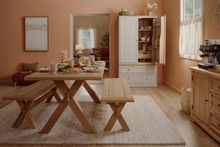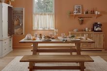 - The Highworth dining table in solid oak becomes the natural heart of the home, paired with Highworth benches for relaxed seating.