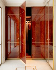 - High gloss finishes and rich woods in plum and terracotta from the walk-in wardrobes in rich oak, teak and walnut to the panelled bedroom interiors, materiality is on the walls and ceiling