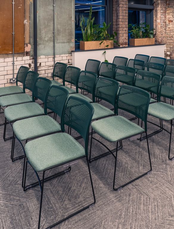 KI furniture is also featured in the new Material Source London, with the co-working space finished with Work 2.1 Contour Sit-stand desks paired with Grafton HD Stools, along with the theatre seating featuring Grafton HD Chairs alike to Manchester.
