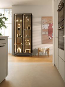 Salona further extends Schüller's living furniture range with coordinated storage solutions and glass display units, creating cohesion and visual harmony throughout the open-plan space.
