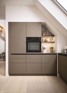 A key highlight remains Matera's strong sustainability credentials. Matera seamlessly combines beauty and practicality with environmental responsibility, using sustainable raw materials throughout. The fronts are made from 78% wood sourced from the circular economy and are fully recyclable. Handles are crafted from recycled plastic, while all interior drawer fittings are made from OrganiQ, a material derived from hemp and kenaf. Anti-fingerprint surfaces ensure low maintenance, durability and a long service life.