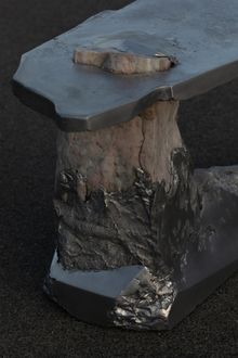 Marcin Rusak Studio presents 'Flora Lamp II', a unique translucent resin work that embeds preserved flowers and reveals botanical detail through soft LED illumination. Formsophy showcases a Console and Coffee Table cast in liquid aluminium with embedded stones, shaped outdoors by natural elements.