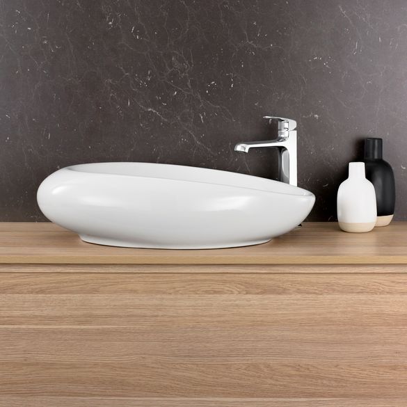 The Muze range features Caroma's first freestanding basin and encompasses dramatically smooth, sculptural forms and fluid curves that serve as a striking visual element, giving this basin range its signature looks and tangible sense of luxury. The above-counter version demonstrates a fusion of natural form and fine craftsmanship, featuring a stunning, asymmetric silhouette and streamlined form with a powerful tactile quality.