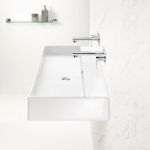 The Teo Wall Basin blends a geometric, rectangular slimline edge detail to create a simple, yet sophisticated design language. The wall-hung design eliminates the need for a vanity unit, making it ideal for the true minimalist and those seeking clever solutions for smaller bathrooms. Available in five sizes, from 410mm up to the 1200mm double basin, there is an option to suit every bathroom space and lifestyle.